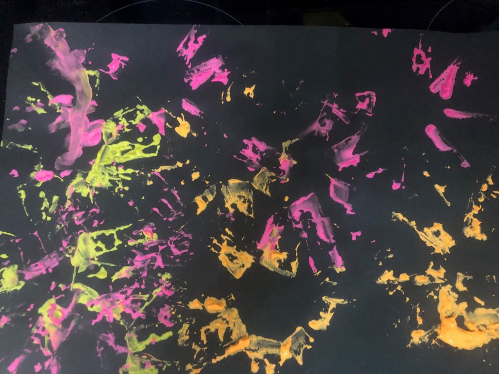 - Different colour paints – bright neon ones are great for this project. I used three colours from a set of six neon finger paints from the Early Learning Centre