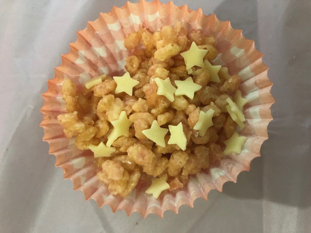 Melt 100g white chocolate and mix with 200g strawberry and white chocolate coco pops – you can always add a little more cereal if the mixture looks too ‘wet’. I added two tablespoons of golden syrup as well.