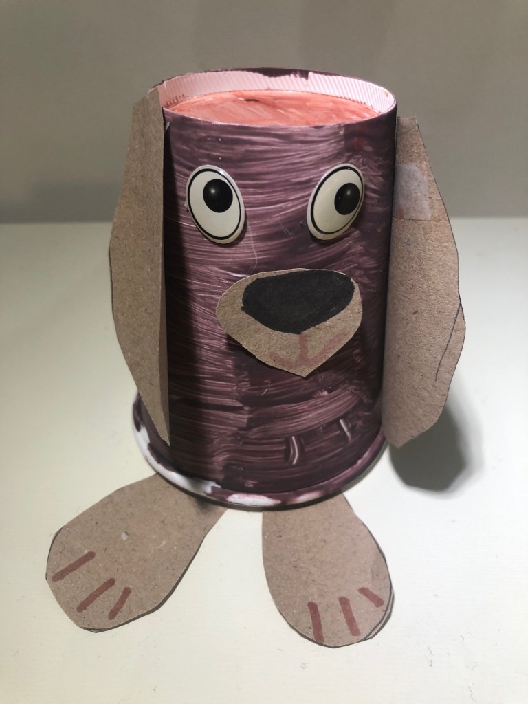 - Feet made from brown card with pen detail