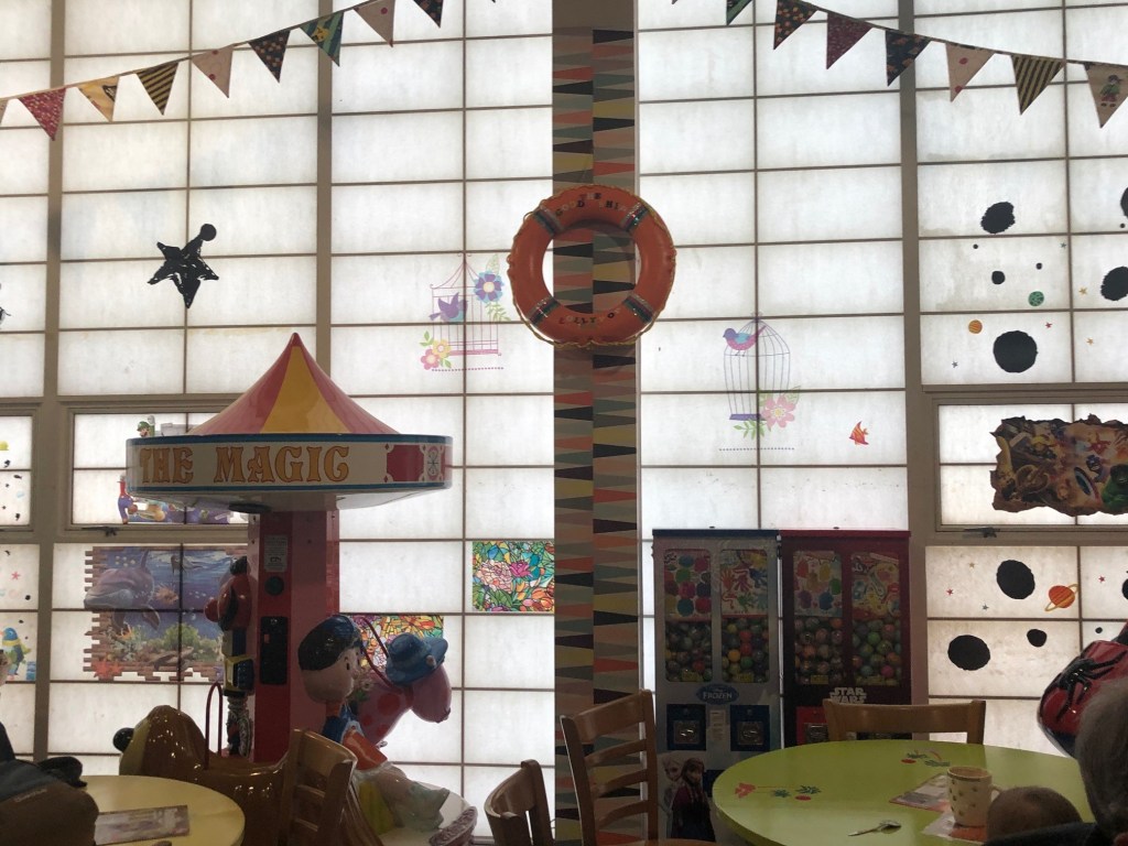 Thinking about the soft play I had been to locally, I wanted somewhere my parents could sit and have a coffee but ideally see the mini moo playing – and at Sutton Sports Village they could have done the former but not the latter and at the leisure centre the latter but not the former. Little Lambs Softplay in Coulsdon would have been ideal but getting there would have been an issue as I didn’t find parking there on a weekday very easy (Little Lambs has since closed down unfortunately).