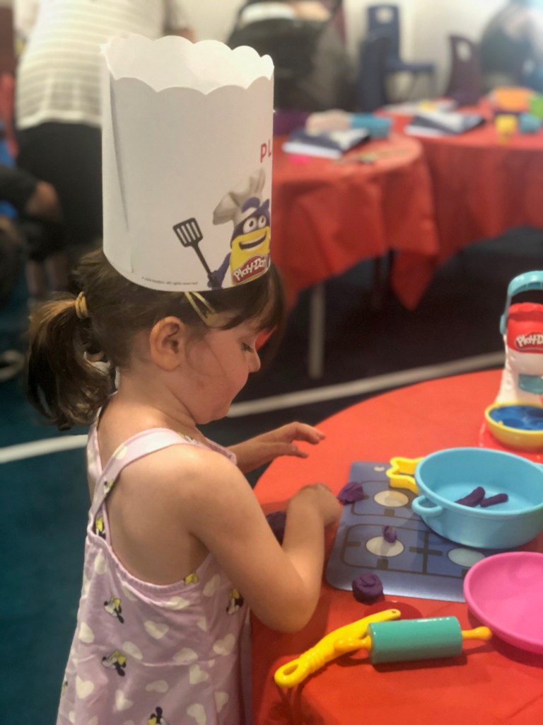 This is a Just for Tots break only activity where children are given their own pot of Play-Doh (which you can take home afterwards) and a paper chef’s hat. Parents sit at a table and the child goes to a table nearby which has a selection of Play-Doh kitchen equipment, to make whatever they like. And that’s about it really. There were a couple of Redcoats circling and chatting to people, and I ended up kneeling next to my daughter to help her with the cutters. Not the most exciting activity but a nice break if you have been doing a lot of physical or over-stimulating activities and shows – though this was actually the very first thing we did when we got to Butlin’s and it would have been better I think to do a bit later.