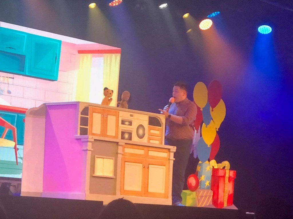 Justin Fletcher was the headline act on our Just for Tots break and the reason we booked these particular dates. I was super anxious about getting a space for the show, as there were three time slots on one day and that was it. So I made it my priority when it came to booking activities and shows and we were able to get the time I wanted.
