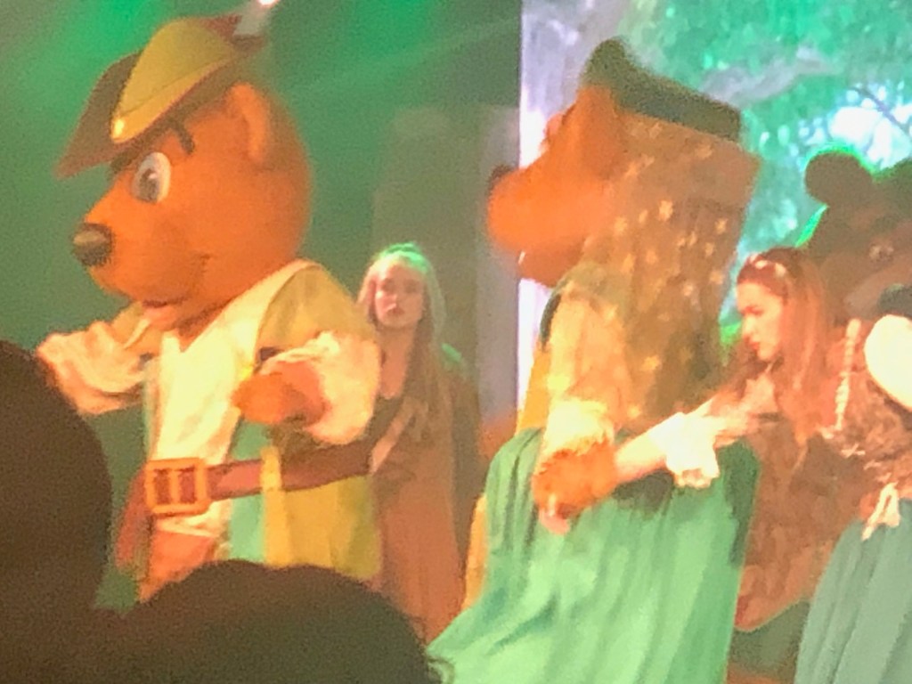 Billie and Bonnie Bear are the Butlin’s mascots – and you can’t miss them as they are pretty big! We watched a Robin Hood pantomime-style show where I thought my daughter may have found the story a little hard to follow (I wasn’t entirely sure what was going on the whole time) but was quite entertained by the bears and the big bad wolf. It was our first evening show at Butlin’s and we’d had to rush out of the restaurant, skipping our desserts, to make it on time as the service in the Fish and Chip Restaurant was so slow. We managed to get a table with a reasonable view and ordered drinks via the B Serve app which was brilliant as they came to our table in just a few minutes.