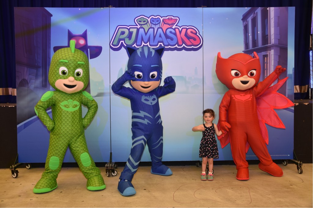 It’s billed as an interactive experience but really it’s a show with a bit of audience participation. Each table had one cardboard mask – they were laid out with the left hand side of the room having a red Owlette mask, the middle section a blue Catboy mask and the right hand section (as you face the stage) a green Gecko mask. It was pure luck we got the one my daughter wanted (Owlette) – though I’m not sure what happens if you have more than one child in your group unless there are empty tables you can take another mask from. The audience were asked to cheer and do actions at appropriate moments during the show – the plot was so thin I can’t even remember what it was, but my daughter thought it was great!