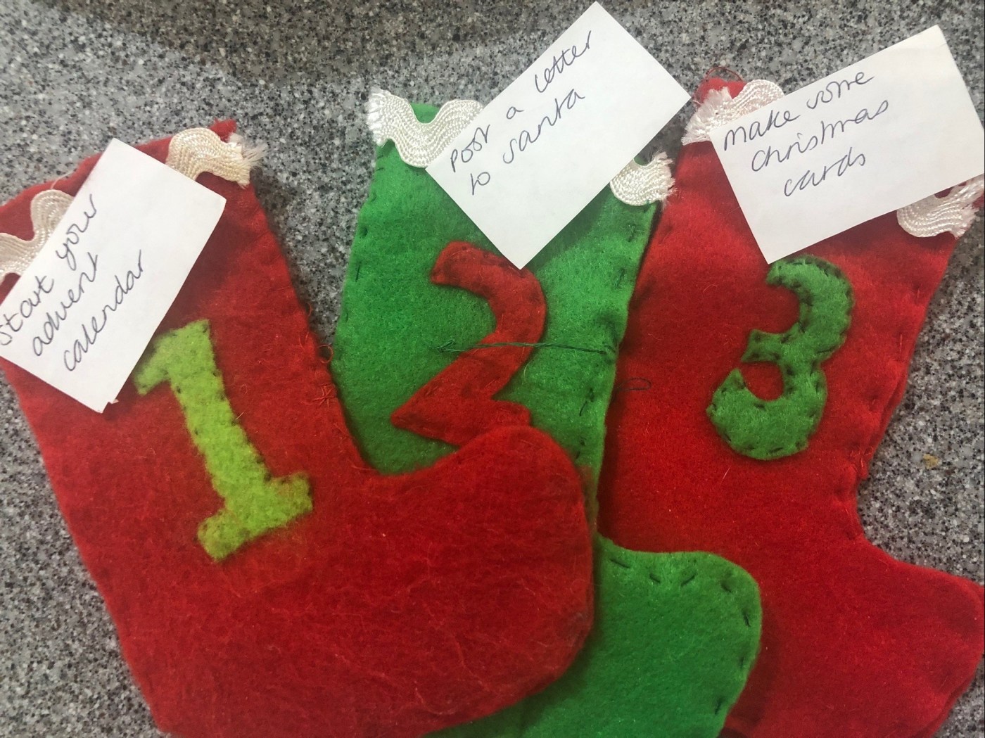 I still wanted to use the stocking calendar I had made, and had seen a few other people do ‘advent activity’ calendars in the past, where you have an activity, task or event in the calendar for each day. It’s not as easy to find things for younger children, especially if they need to be things we can do in the evening after work/nursery, but next year my daughter will be at school and on Christmas holidays for several weeks – which will be a whole other problem, but at least it will mean we have more time for Christmas activities!