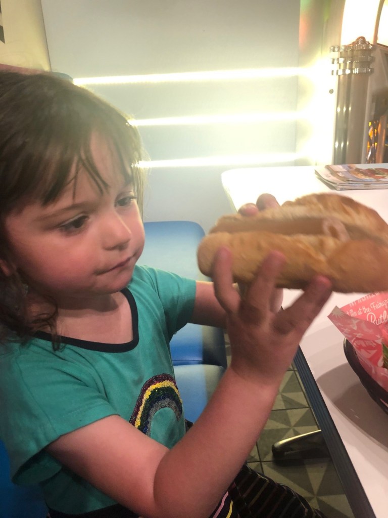 The rest of us weren’t thrilled about having to wait an hour for food particularly with a hungry three year old, and also a show to watch at 6.30 – we had thought an hour and a half would be plenty of time for dinner. My husband, daughter and I ended up only eating our main course and leaving the restaurant before our desserts came, which we had of course already paid for due to the Dinearound plan, so that we could go to the show. Our parents meanwhile opted to stay and eat dessert which means they missed the show. It was really disappointing especially given how nice the food was.