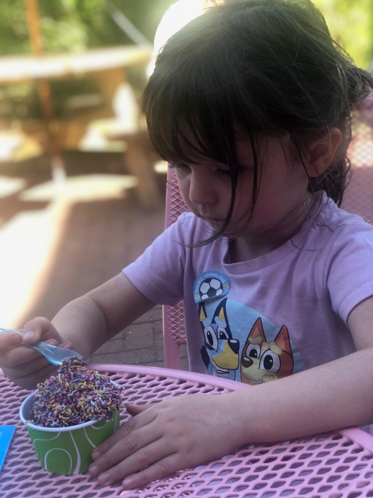 Looks very pretty from the outside but I was a bit disappointed by the range of flavours on offer as there wasn’t anything particularly unusual – our local ice cream cafe offers a unicorn ice cream which is basically pink and blue mixed, and I think Butlin’s is missing a trick by not having something like this for children. They do have various toppings you can add though the one I selected from the menu was apparently out of stock and instead the server pointed to a large jar of mixed sprinkles which we could have instead. Still, an ice cream on holiday is pretty much a must have!