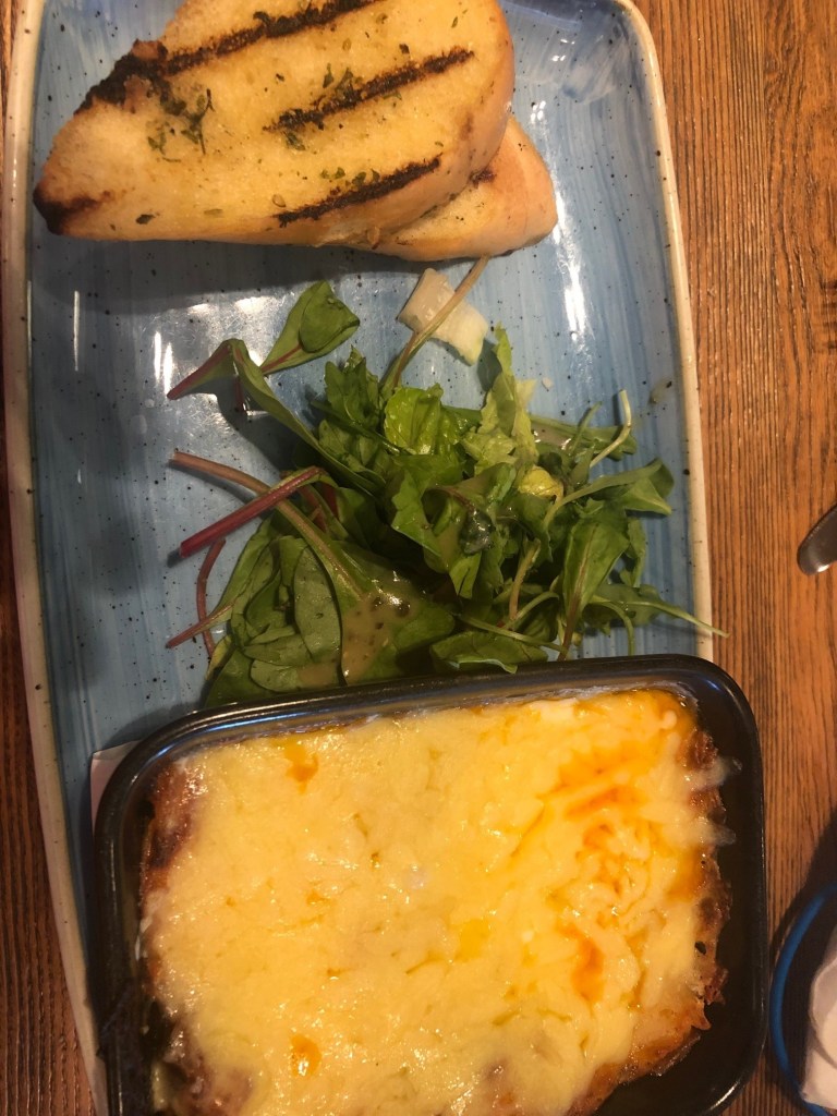 My father-in-law was the only one of us who had opted for a starter instead of a dessert and I wished I had too when I saw the size of his prawn cocktail dessert which he said was excellent. However, we had to wait nearly an hour for the food, despite the restaurant being almost empty when we arrived at 5pm. When they did bring the food out, they brought my father-in-law’s starter and then the main courses for the rest of our table at the same time – including my father-in-law’s main course as well. He sent it back pointing out that his fish and chips would be cold if it sat there while he ate his main course, so they took it away – but didn’t replace it or even do anything to keep it warm as when he was ready for his main course they brought back the same dish, now cold.