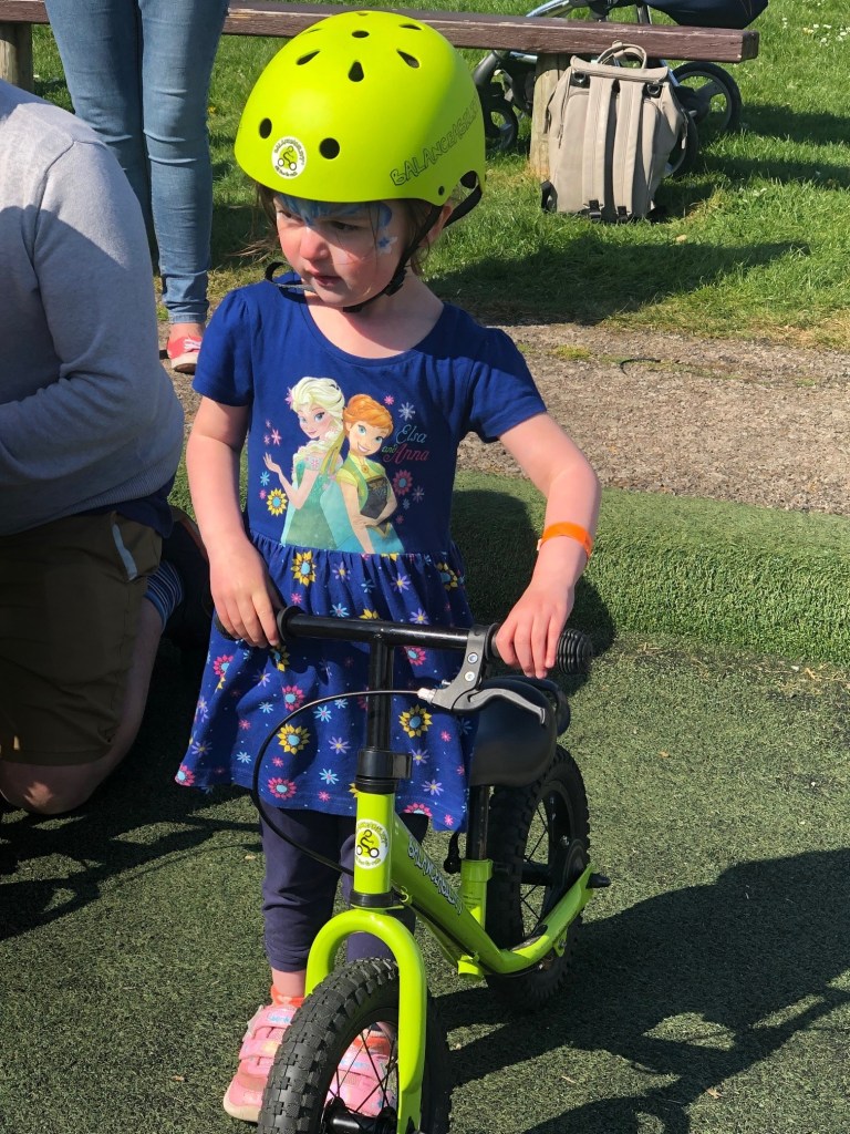 Sophie has had a balance bike for over a year now but hasn’t used it much, so we thought it would be good to give her some more confidence and hopefully encourage to use her own bike more.