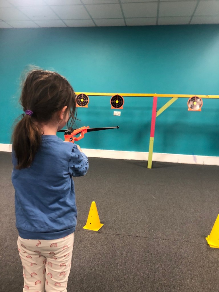 We thought this was a better way of running this activity; last time they only had about six places per session so a lot of people weren’t able to book, and it’s the sort of thing I think many children would like to try but once they have done it for a few minutes – as hitting a target or more likely not hitting a target isn’t really that exciting to keep a young child’s attention for that long – they have had enough and want to go and do something else. Sophie did enjoy it more than last time though!