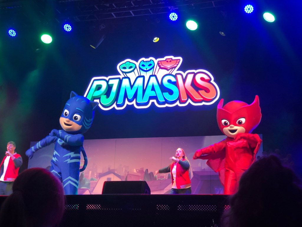 I let my four year old go to the area in front of the stage though I went too and sat on the floor – there were lots of children running up and down before the show started and joining in with the actions during the show. Several of them were dressed in PJ Masks costumes – including my own little Owlette! We bought the costume from Amazon a while back and brought it with us, and it was carried around in my bag a lot for when we went to see the show and the PJ Masks photo meet and greet. As one thing I found was there was so much going on there was never really time to go back to the room if we needed anything!