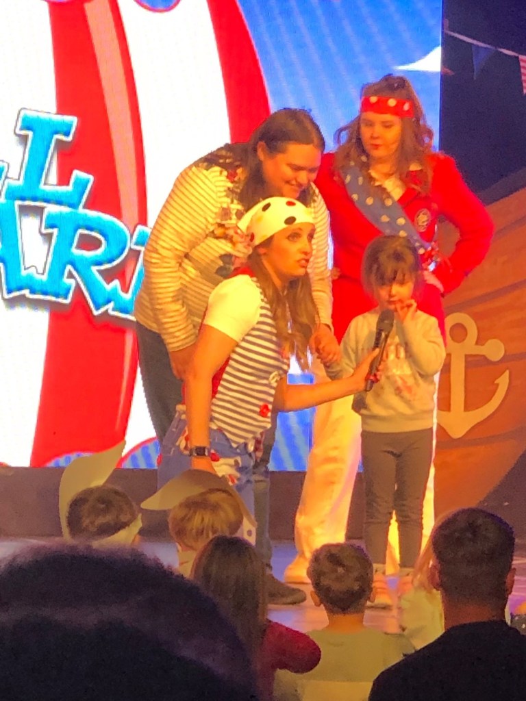 So to be honest I didn’t pay that much attention to the rest of the show as I was looking for the Redcoat to signal that they wanted us and wondering if it would be an issue if I said she had now changed her mind! But then right at the end when the Redcoat came over, my daughter jumped up and happily went with him up onto stage with me following.