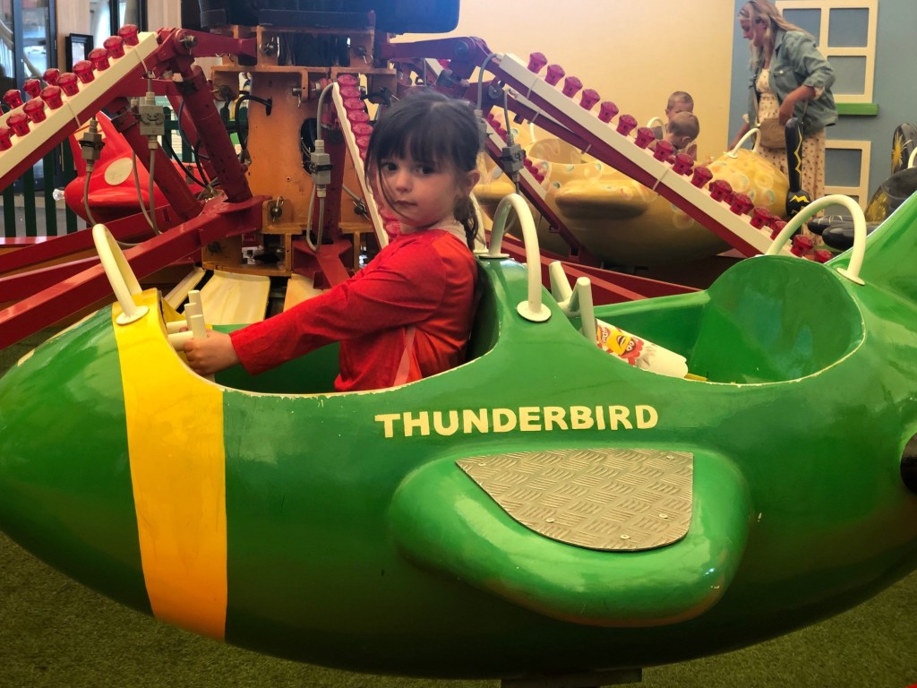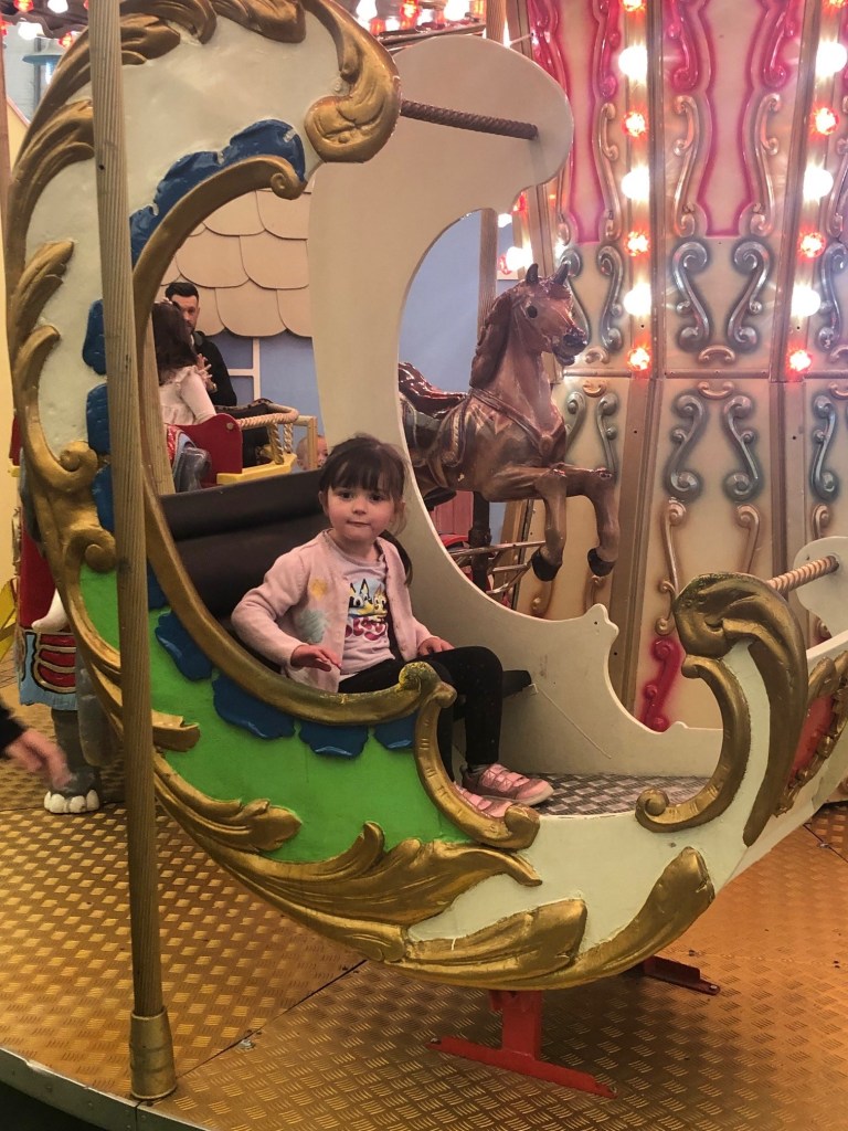 At four Sophie either still wasn’t old enough to understand the difference between the free fairground rides and the paid for ones in the arcade – or she just didn’t care. Her absolute favourite was a pink one next to the soft play with Lady and the Tramp, that rotates slowly and plays Who Let The Dogs Out. We have been hearing that song at home every since!