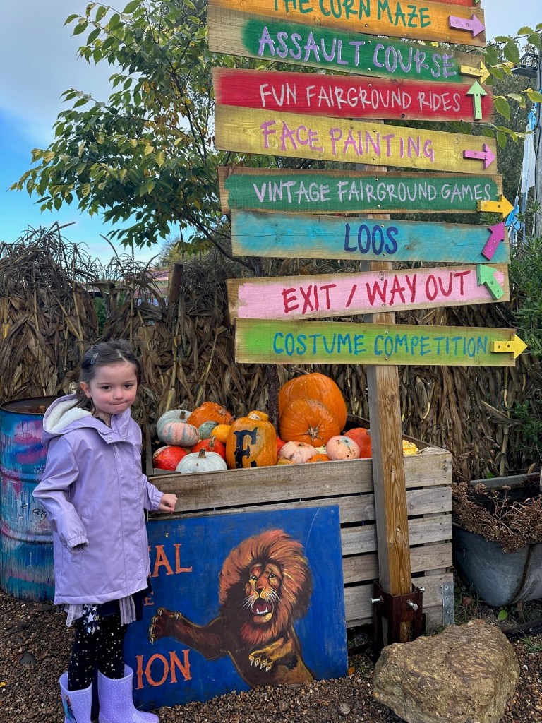 Pumpkin picking has become a popular day out for many families, but the sceptics point out that it would be easier and cheaper to pick one up from the supermarket, and that it’s more about the pictures for social media than anything else. We have enjoyed the two occasions we have been pumpkin picking, at Tulley’s Farm in West Sussex and Naturally Thinking farm in Wallington, but I was excited when I read about the pumpkin festival at Crockford Bridge Farm in Weybridge. They had entertainment, fairground rides and games, a scavenger hunt, maze and more.