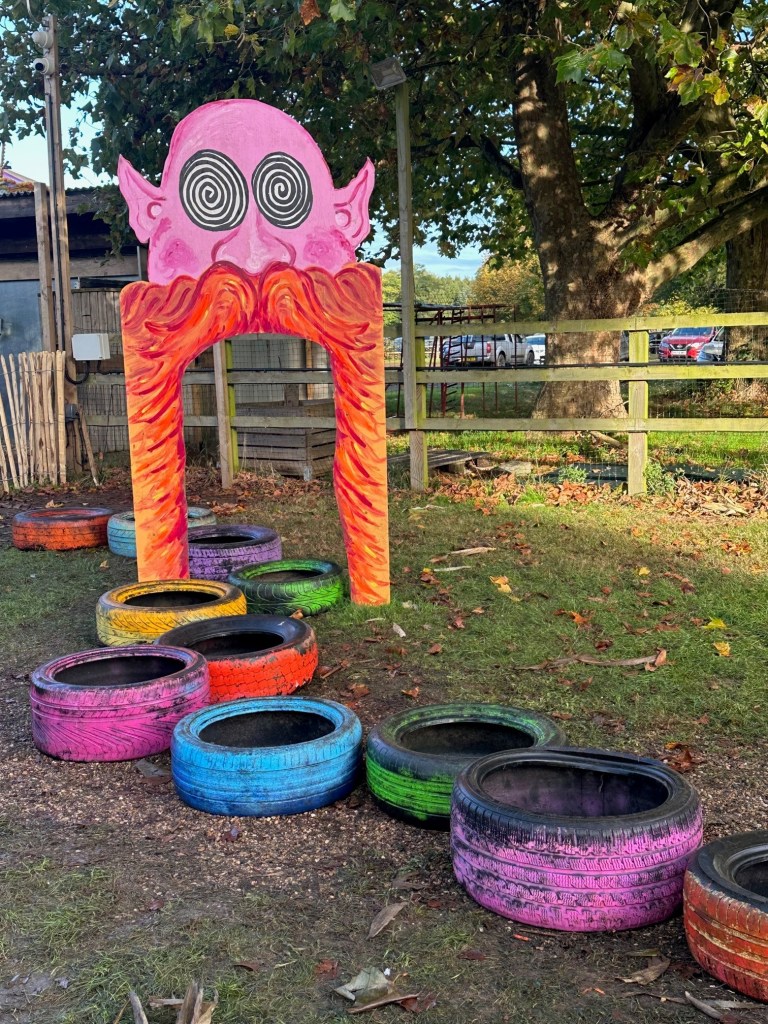 There were three vintage fairground games of the ‘throw a ball in a bucket’ variety which were free to try; I was keen to have a go but my daughter didn’t want to and was more interested in playing in the playground and going on the tree swing. The corn maze was very easy and only took us a couple of minutes to go around; next to it was a small obstacle course with tyres to step in the whole way around and a couple of slides coming down off hay bales.