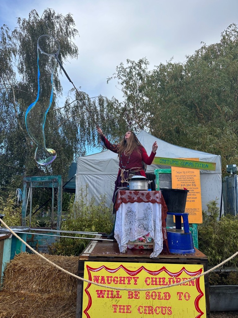 There were circus entertainers – we saw two stilt-walkers as we arrived, and a lady making giant bubbles who we watched for a few minutes, but we didn’t come across any of the other advertised performers (I suspect we just missed them). My daughter was wearing her Halloween costume but didn’t want to enter the fancy dress competition – where the prize was a pumpkin.