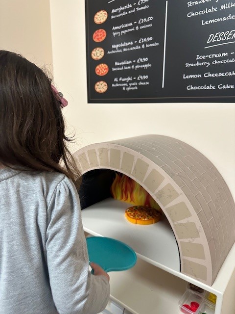 We also found a postbox containing several letters, a postal worker’s bag and uniform and realised that each shop or restaurant had its own mailbox on the outside, so my daughter enjoyed going round and delivering the colour-coded letters to each establishment.