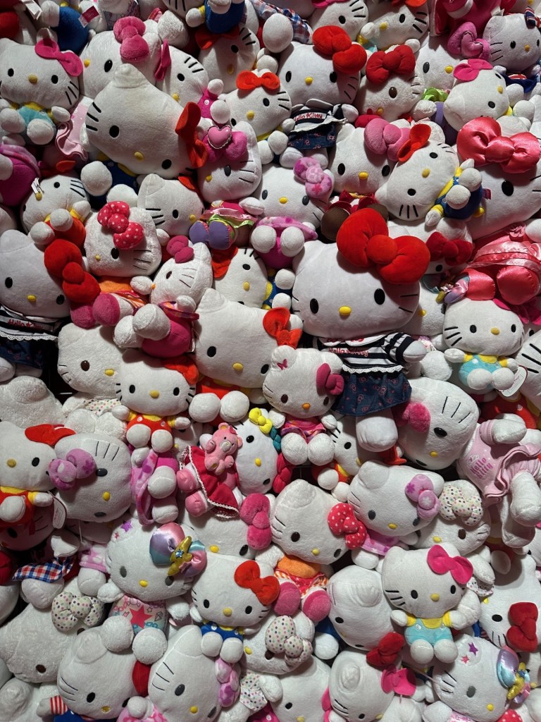 The next room is a dream for fans of Hello Kitty – even the walls are formed of hundreds of Hello Kitty soft toys fixed to the wall, with little benches you can sit on for a selfie or to lean back against the soft toys (I’m sure there’s also some sort of dark hidden meaning at play here too). It was interesting to learn about the history of Hello Kitty and see how the designs have changed through time, as well as to see a selection of products and merchandise available through the years, from stationery to shoes to television sets, Hello Kitty zombie figures and more.