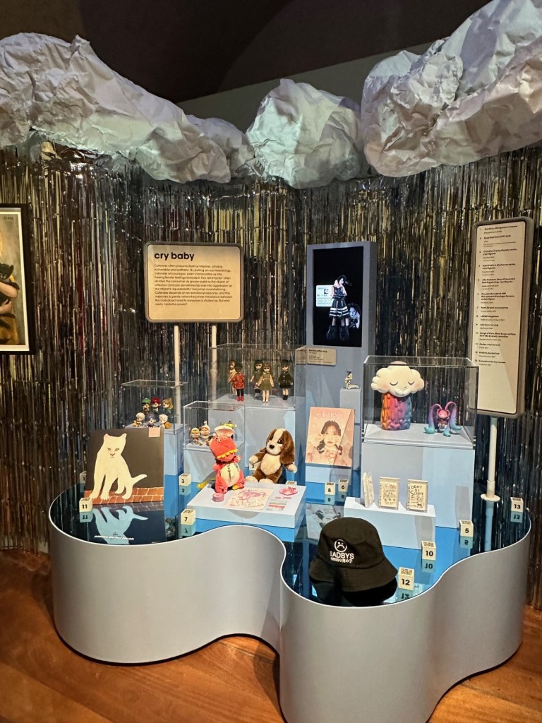 Inside, the first room is dedicated to cats, with a collection of ornaments and artwork, followed by a Japanese-themed room with an explanation of ‘kawaii’ – a term that has become common recently to describe the likes of Squishmallow toys and seemingly any cute cartoon animal with over-exaggerated features. I learnt that cuteness actually took on a more subversive form as young people used kawaii as a way to show dissatisfaction with society’s traditional values and to push back against accepted norms.