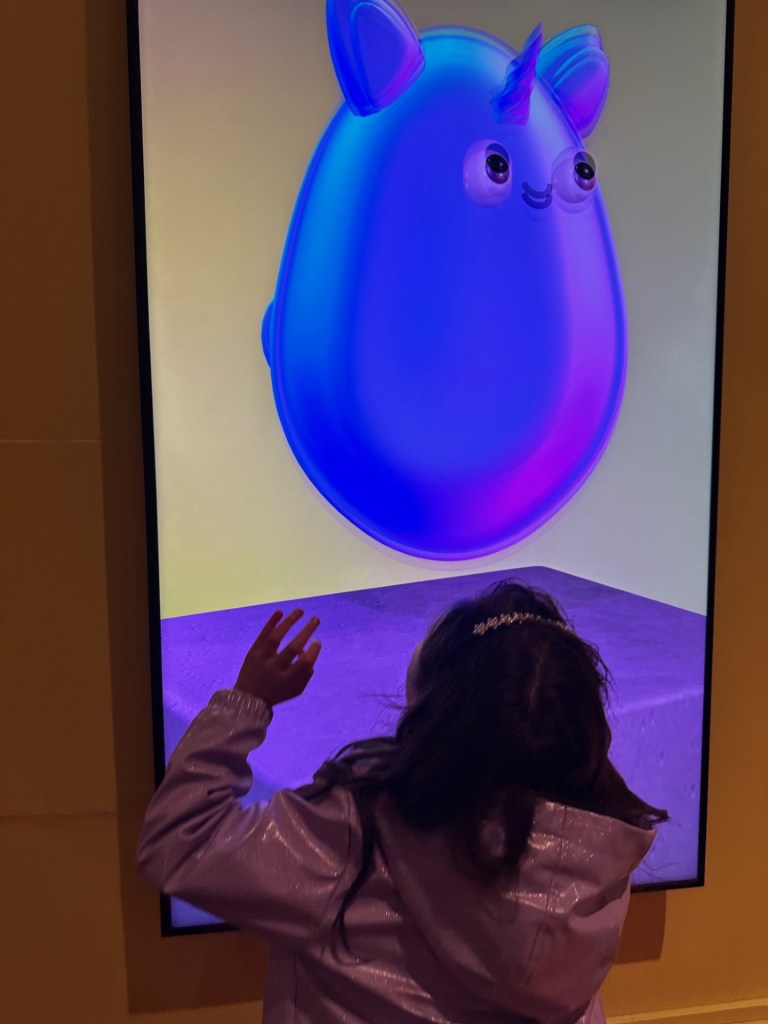 Before you go in, you can scan a QR code and create a cute character choosing from different shapes, expressions and so on, which is then displayed on a large digital screen in front of you. My daughter and her cousin enjoyed this and it’s good to spend a few minutes if you arrive a bit early.