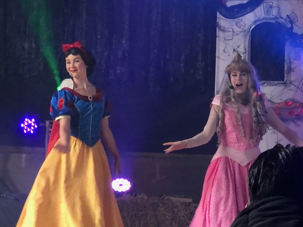 There were three shows/ interactive events taking place at multiple times throughout the day and as it was busy we made sure we were at each venue a good ten minutes in advance. Adults sat on hay bales in a barn and children sat on chairs at the front to watch the Pumpkins and Pixie Dust show, which revolved around the princesses getting ready for a ball and Maleficient trying to spoil their plans until she gets hit by a magic spell and gets into the party spirit. The princesses sang and danced to various pop songs and I was quite amused when Maleficient had her change of heart and they all performed her favourite song at the end -My daughter loved the show and seeing all the princesses and is now a big fan of the Timewarp too!